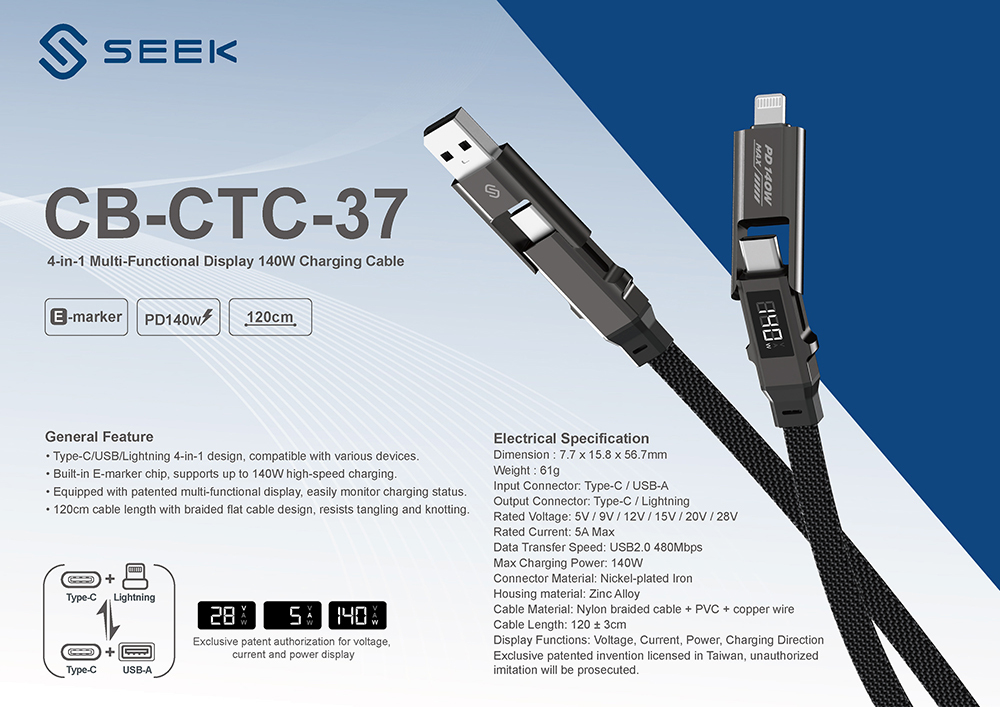 ▶Built-in E-marker chip, supports up to 140W high-speed charging.