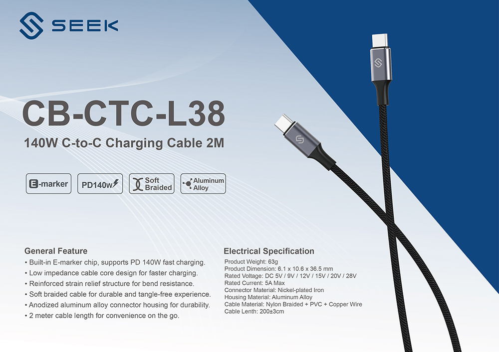 ▶Built-in E-marker chip, supports PD 140W fast charging.
