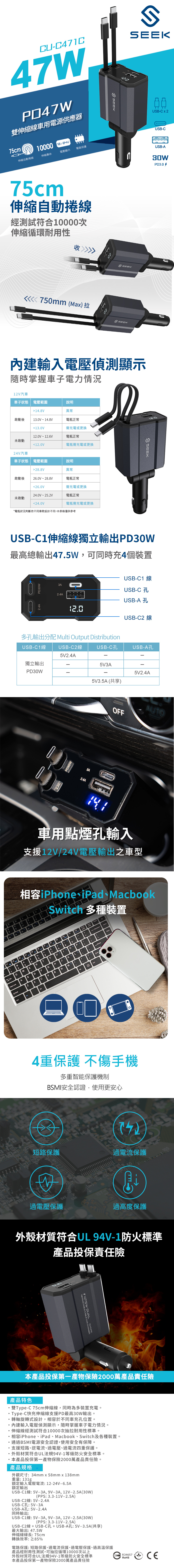 ▶Type-C快充伸縮線支援PD最高30W輸出