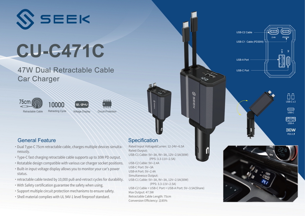▶Type-C fast charging retractable cable supports up to 30W PD output.